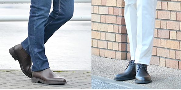 ちょっとかしこまった格好だけど、そこまで型ぐるしくなくていい場面には、チャッカブーツや、サイドゴアブーツでクールな格好良さをプラスして。