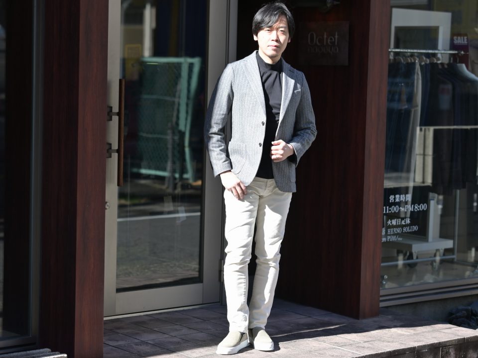 最後はイタリアを中心としたラインナップの当店としてはぜひパパでも諦めて欲しくないクラシコなキレイ目スタイル。根本的にジャケットスタイルをすることをTPOとは別のレベルで普段のコーディネートに取り入れて欲しいなぁっとすごく思います。テーラード出身の弊社としてはジャケットをスタイル良く着こなしている男性のコーディネートがやっぱり一番格好良いじゃないかと思うのです。もちろん好みはあると思いますが、それでもサイズ感やコーディネートをちゃんと整えれば、やっぱりジャケコーデは最強だと思います。