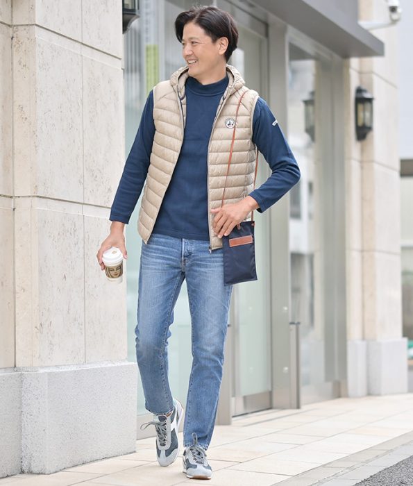 持ち運びに便利な、ライトダウンベストで温度調整しながらアウトドアを楽しむことが出来ながらアクティブに動く日には強い味方になってくれるスニーカーは逸品です。