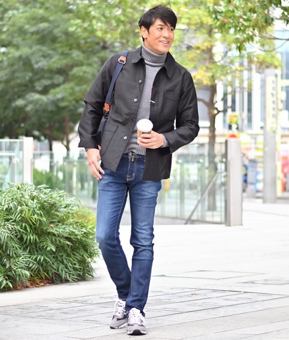 カバーオールジャケット×デニムを取り入れたカジュアルスタイルでもバッチリ合いますね。