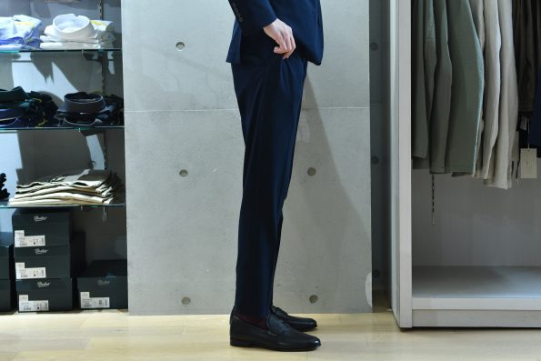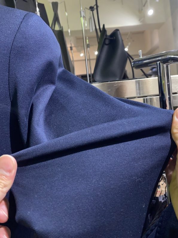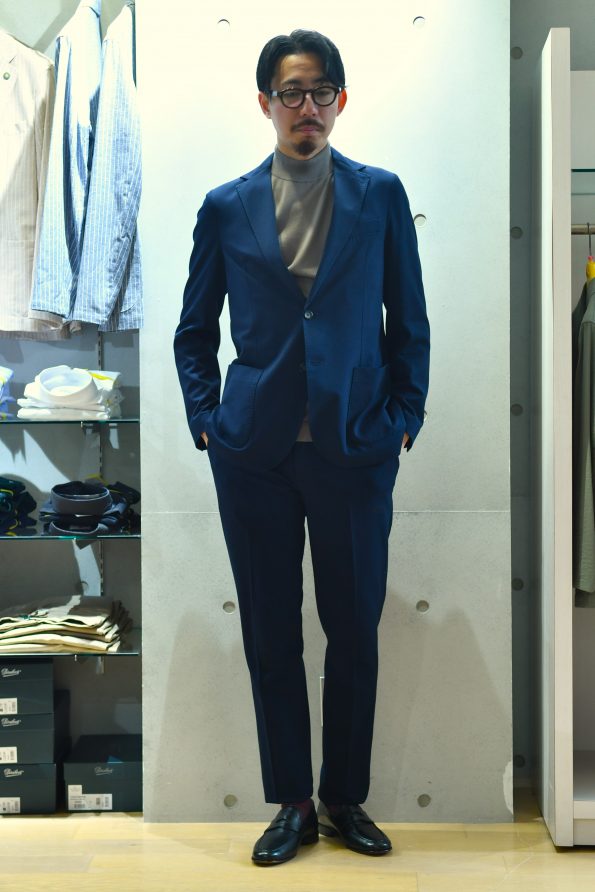 さて早速着てみました。ネイビーはパンツも別売りで入荷してますのでセットアップで着用してみました!シルエットも凄く綺麗ですよね。特にネイビーであればオフィスカジュアルでの使用もまったく問題ないですし、むしろ昨今のカジュアル化の流れであればスーツ着用の仕事場でもこのジャージーの少しラフな素材感が丁度良いかもしれませんね!