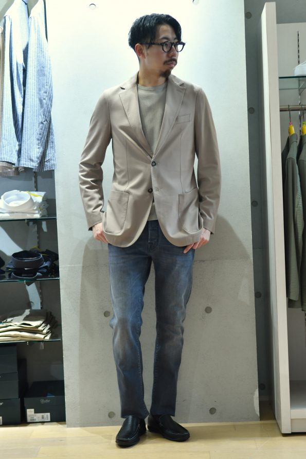 こちらはジャケットのみの展開となりますので、今回はヤコブコーエンのデニムに合わせてみました。