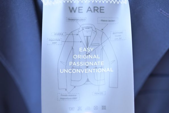 ジャケットの背中内部分にはこのように商品の説明が!拘りが詰まっているのが伺えますね。
