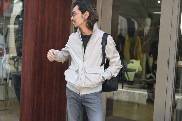 さてこちらはスウィングトップブルゾン!!スウィングトップとはその名の通りスウィングするために作られたブルゾン。そう、つまりもともとはゴルフでスウィングしやすい上着として誕生した形なんです!ここ数年注目度が上がってきているトレンドアイテムで良く出回っているスウィングトップだと裏地にチェックのデザインが入ってたり、少しふっくらした生地感が野暮ったくみえおじさんっぽいと敬遠している方も多いと思いますが、こちらのヘルノは物凄く都会的なデザインで贅沢な生地を使っているのでとてもスッキリ着こなせるアイテムです!