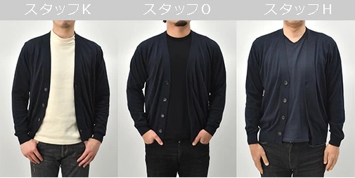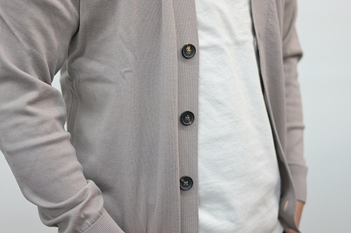 次に良いなと感じた点は、やはり着回し力が高い部分だと思います。コットン100%のハイゲージで仕上げているカーディガンなので真冬以外は着れますので、長い期間着用出来る点は嬉しいポイントですね。