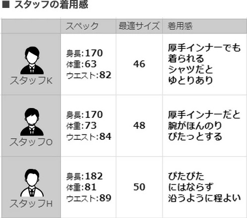体型の違うスタッフ3名のサイズスペックと着用感をご紹介しておりますので、ぜひ参考にしてみて下さい!!