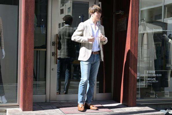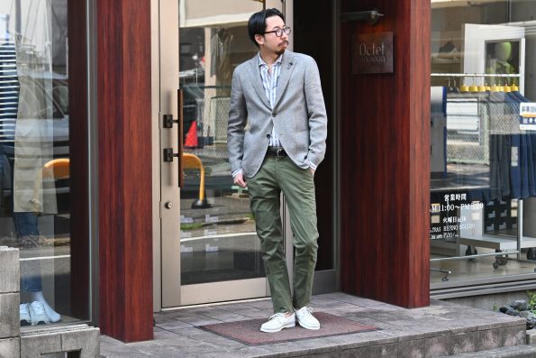クラシカルな雰囲気が漂うこちらのジャケットなんですが、見た目に反して実はシャツジャケットなんです。ラルディーニから出ているイズモというモデルで纏うだけで凛とした表情が癖になりそう。