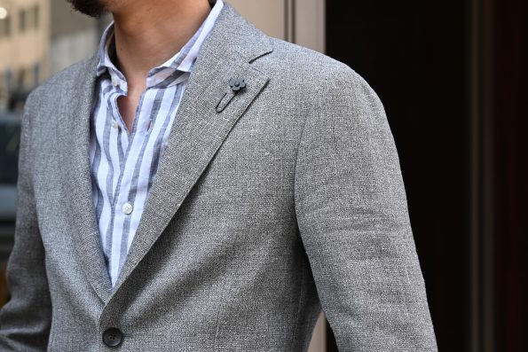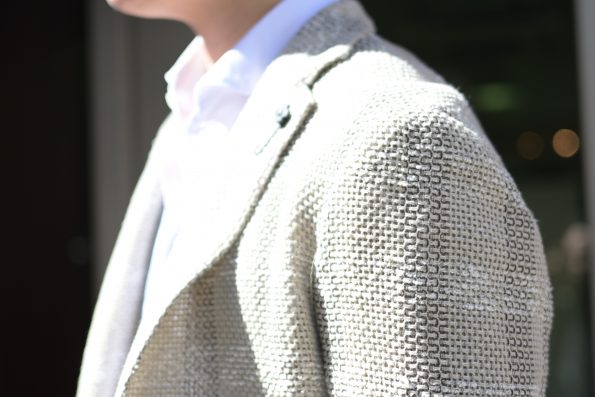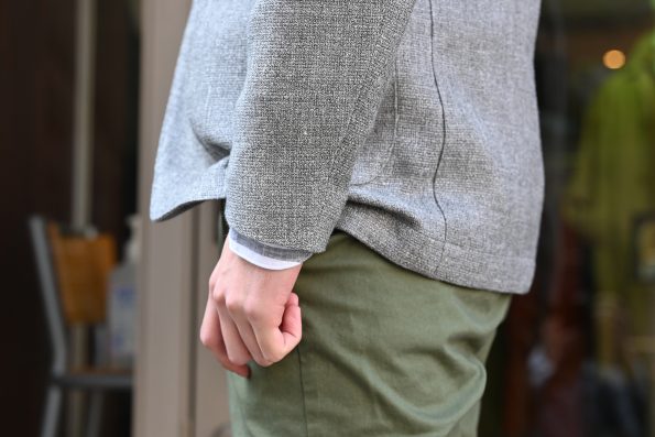 生地の色気も凄い。カラミ織りによってリネンとサマーウールの表情が堪らないですね。ちなみに胸ポケットはついてません。
