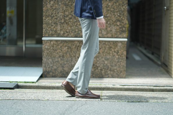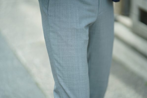 生地もサマーウールなので、色艶が物凄く、夏でも涼しく着れるのはとても嬉しいところ。その上、防シワ性、撥水性まであるのだから、あれこれ試した挙げ句、やっぱりこのパンツに戻るという人も凄く理解が出来ます。因みにこちらはウォッシャブルなので自宅で洗濯することも可能ですよ!