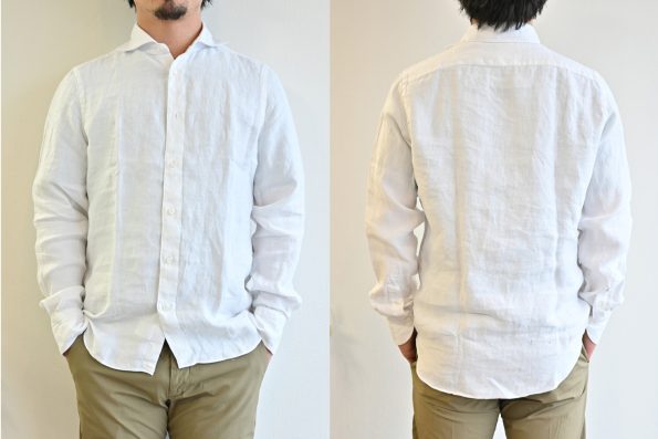 暑い夏になると、当然半袖Tシャツや、半袖シャツを着る機会が増えると思いますが、今だと夕方から寒くなったりする季節なので、カジュアルだけど、カジュアル過ぎないアイテムと言えば、長袖のシャツがお勧めです。さらに真夏まで、涼しく着こなせるのが、コットン素材のシャツに比べ、日本では、夏によく見かける「リネン」素材のシャツです。実はリネンは、イタリアなど海外では、年中着れる生地とされているのですが、生地が涼しく見えるせいか、日本では夏のイメージが強いようです。当店でも夏に一番リネンシャツがよく売れます。