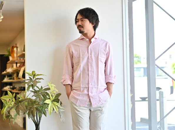 リネンシャツと言えば、当店で人気の2大ブランドが「GIANNETTO/ジャンネット」と「Finamore /フィナモレ」です。今回はまず「GIANNETTO/ジャンネット」のリネンシャツの中でも、コットンリネンと言う、コットンとリネンが混ざった生地のシャツをご紹介します。