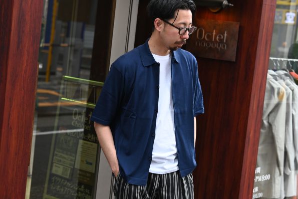 ポロシャツとは違い、釦が下までついてますので半袖シャツをさらっとカーディガンを羽織るように着るのもオススメですし、釦を閉めてシャツのように着てしまうのも良いですね。ポロシャツ同様の使い方をしつつも羽織としても使える万能アイテムで御座います!なかなか珍しい形なので、既にポロシャツは持っている方にもオススメですよ。