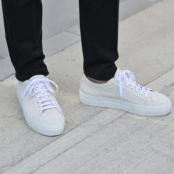 最後にこちらは、シューレースタイプのスエードレザーver.。やや丸みをもたせたフォルムがスニーカー全体から柔和な雰囲気を醸し出していて、カジュアルさと上品さのバランスがとれたスニーカーです。