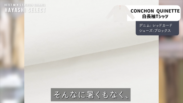 インナー的に使い回す事も出来て、1枚でもスマートに見える、万能な長袖のTシャツの中から、今回はこちらのコションキネットのアイテムを使って、様々なスタイリングをご紹介致します。