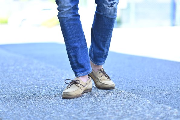 実際に自分が履いてるバースをパシャリ。こちらはスエードのモデルですがこの時期はデニムやショーツを履く際についつい履いてしまいます。カジュアルなスタイルでも自然に合うのがほんとにプライベートでの勝手が良いんですよねぇ。履きやすいですし(笑)