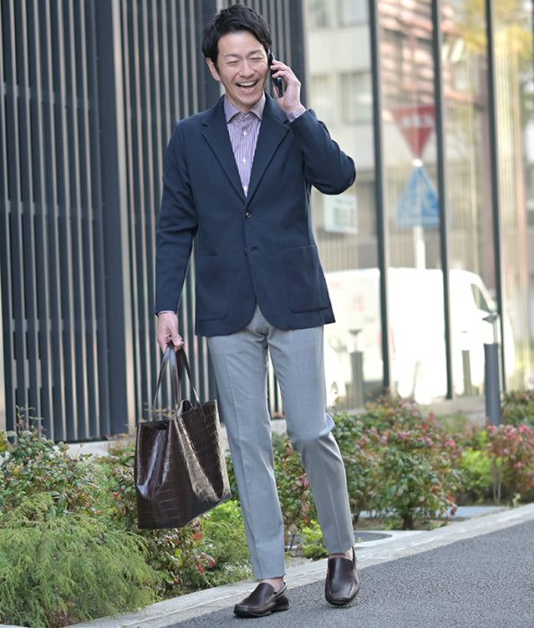 スニーカーではカジュアルすぎるけど、革靴はちょっと…。でも楽な靴がいいな、という迷えるシーンにまさにぴったりマッチするシューズです。