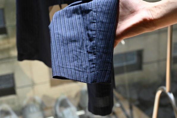 シャツジャケットなので勿論袖形成はされてません。このジャケットの特徴ですが、アームホール、袖口ともに細すぎない作りなんですよね。こういったところもあくまでクラシカルなディティールに拘っているのが分かります。