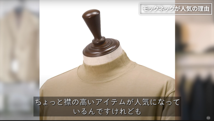 ここ数年、ずっとモックネックと呼ばれる少し衿の高いアイテムが人気となっています。