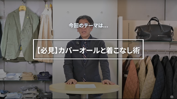 今日はアラフィフ・アラフォーの方にもおすすめのカバーオールについてお話ししようと思います。特に注意してほしい点や、着こなしのアドバイスについて、コーディネートを見せながらご紹介したいと思っています。よろしくお願いします。