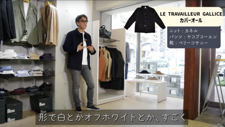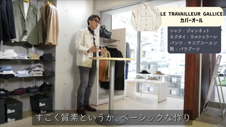 そして、1枚羽織るアイテムとしてのカバーオールは非常に使い勝手が良いアイテムになるのではないかと思います。LE TRAVAILLEUR GALLICE (ルトラヴァイユール ガリス)のアイテムですが、ワークウェアとしての神髄は長く作業着として使えるということなので、丈夫であるという点も重要です。ぜひお値段も見ていただき、「これ結構お値打ちだな」と感じていただければと思いますので、ぜひ注目していただきたいなというふうに思っています。