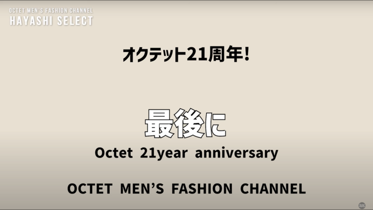こんにちは。オクテットメンズファッションチャンネルの林です。僕のチャンネルは、自分の気に入ったアイテムやブランド、コーディネートのアドバイスをするチャンネルとなっております。今日もよろしくお願いいたします!