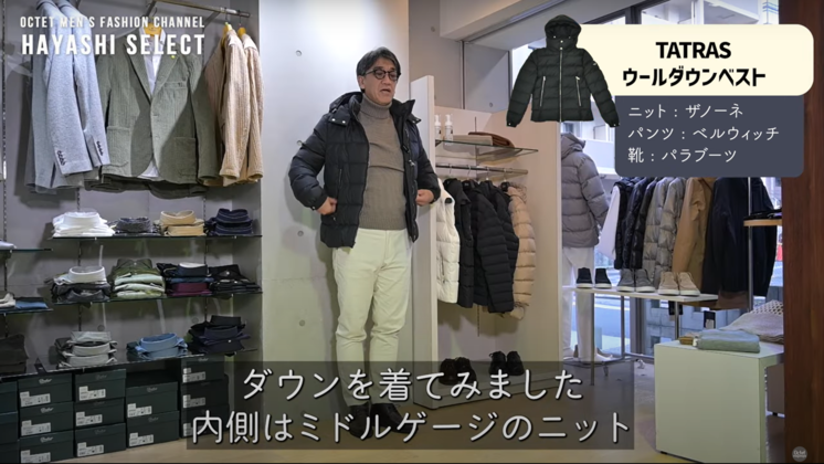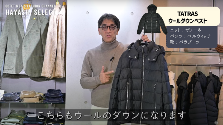 そして2点目、寒い冬、特に1月・2月を見越してダウンジャケットを購入しようという方には、ウールのダウンジャケットをオススメします。ミドル丈でジャケットにもギリギリ合わせられ、ニットやカジュアルスタイルにも対応できるので、長く使っていただける良いアウターです。