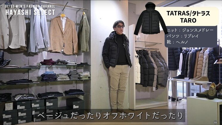 そして、色については黒か、今回僕が着用しているチャコールグレーを選んでいただければ間違いないと思っています。タトラス(TATRAS)をよく見かけるけれど、自分が着るのはどうかな~と思われる方もいらっしゃるかもしれませんが、こういったアイテムは年齢に関係なく、しっかりと着こなすことができると思いますし、このようにおじさんが着てもちゃんとサマになりますし恰好いいんじゃないかなと思っていますので、ぜひ一度、タトラス(TATRAS)に挑戦していただければと思います。