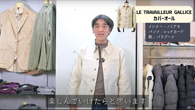ですから、こういったワーク調のジャケットとパンツのセットアップデザインは、秋冬にいくつかの型が登場し、次の春夏にもまた、僕たちからご提案できればと思っております。次回は、このようなワーク調のカバーオールジャケットや、少し異なるテイストのアイテムが、ビジネスやカジュアル、さらに少しエレガントなシーンでも活用できるカジュアルなスタイルとして人気を集めるのではないかと予想しています。