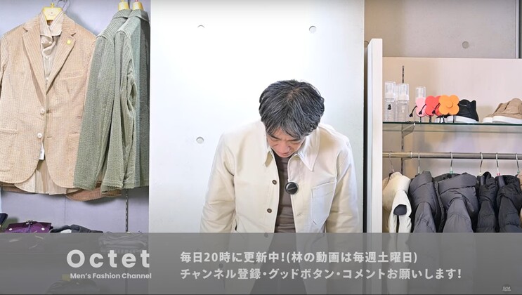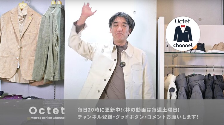 こんにちは。オクテットメンズファッションチャンネルの林です。僕のチャンネルは、自分の気に入ったアイテムやブランド、コーディネートのアドバイスをするチャンネルとなっております。今日もよろしくお願いいたします!