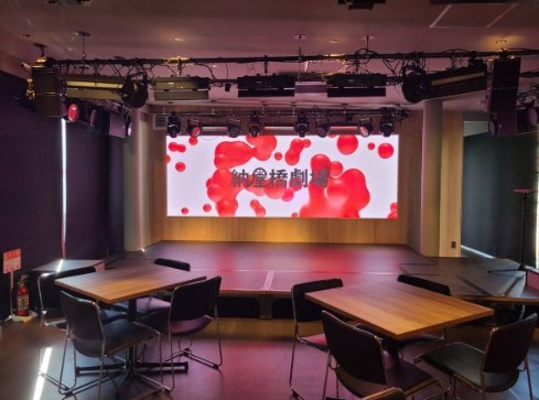 そして同スペースには劇場らしく一段上がった箇所がありビッグスクリーンもあります。こちらのスペースでYouTubeのLIVE配信をします!まさにエンタメ要素盛りだくさんで行っていきますよ!