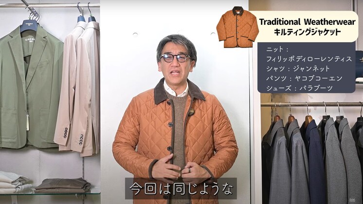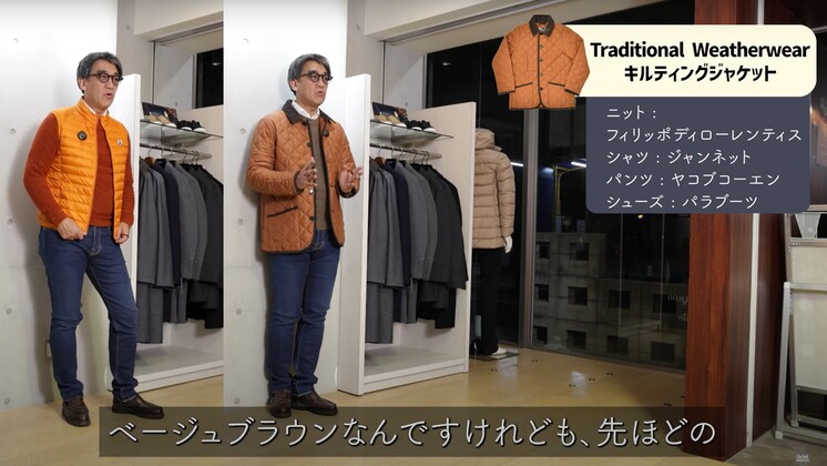 今回はオレンジブラウン、いわゆるオレンジ系のアイテムのアウターをご紹介します。トラディショナル ウェザーウェア(Traditional Weatherwear)のキルティングジャケットです。