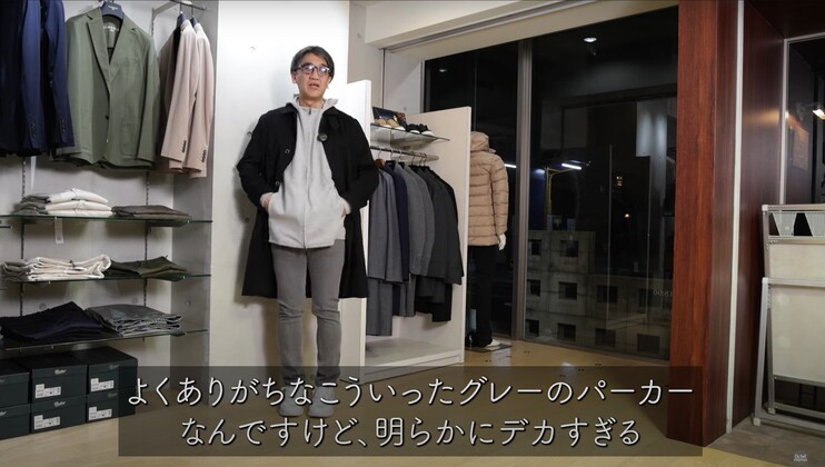 そしてもう1つ大切なのは色です。少し落ち着いた色を選んでいただくと、やはりすごくかっこよくなると思います。サイズ感や色、そして素材も重要なポイントですが、これらをよりうまく組み合わせることで、よりバランスよく着こなせます。これからそのポイントをお話していきますので、ぜひ最後まで楽しんでください!