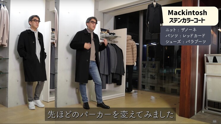 今回使用したマッキントッシュ(MACKINTOSH)のステンカラーコートのようなエレガントで美しいアイテムだからこそ、それに見合ったコーディネートを心がけると、大人の男性でもより洗練された着こなしができると思います。ぜひ参考にしてみてください!