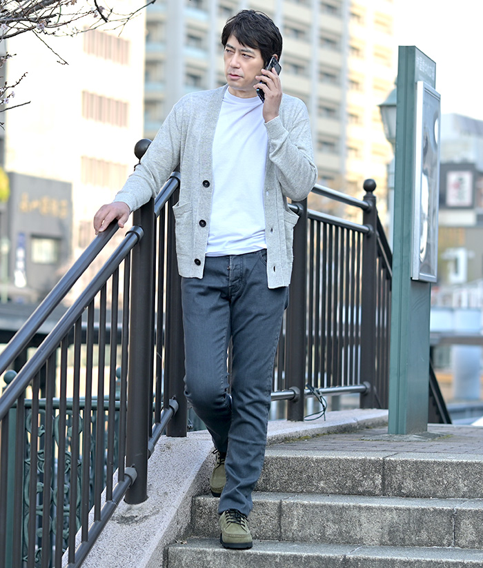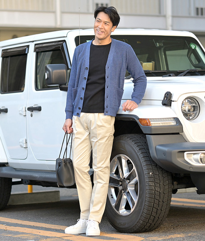 自分の気持ちを見ながらコーディネートできるのも、カーディガンの魅力だと思います。特に、夏でも少し肌寒いと感じることってありますよね…。年齢を重ねてオジサンになっていくと、体温調節が少し難しくなったりすることもあるでしょうし、寒い時は寒いし、暑い時は暑い…そんなときにサッと羽織れるカーディガンは意外と便利だったりします。昔はあまり気にならなかったことも、50代になるとちょっと気になったりすることもありますので、そんな時にもカーディガンが役立ちます。春先にも使えるアイテムですし、今ゲットしておくと、よりお得にファッションを楽しんでいただけるんじゃないかなと思っています!