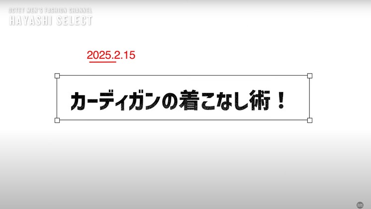 こんにちは。オクテットメンズファッションチャンネルの林です。僕のチャンネルは、自分の気に入ったアイテムやブランド、コーディネートのアドバイスをするチャンネルとなっております。今日もよろしくお願いいたします!