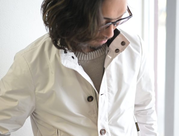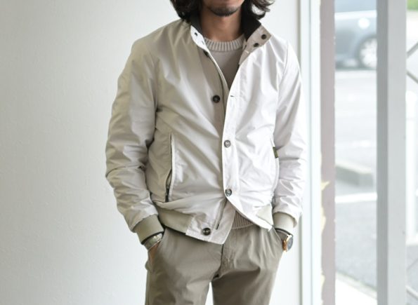 凄く軽く、サイズ感もタイトすぎないので気軽に羽織れる上に、軍物の無骨さが全くないため、ジョンスメドレーなどの上質なニットTと合わせることでエレガントに着て頂けます。