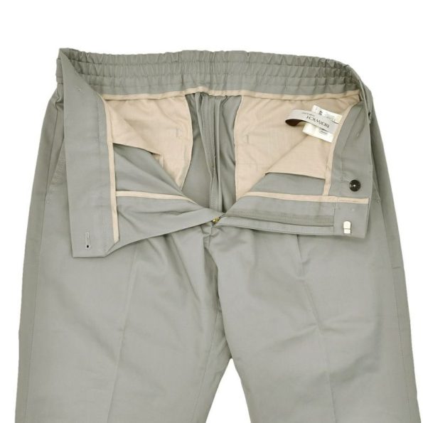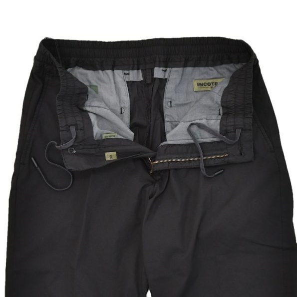 ポイントは腰回りで、まずウエストがゴム仕様になっています。インコテックスらしいドレス感はありますが、紐も付いており、ウエストの内側で調節するタイプとなっています。両サイドから調節できるタイプもありますが、こちらは内側のみの調節となります。