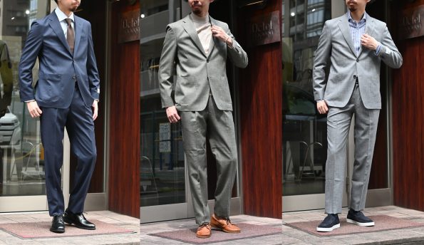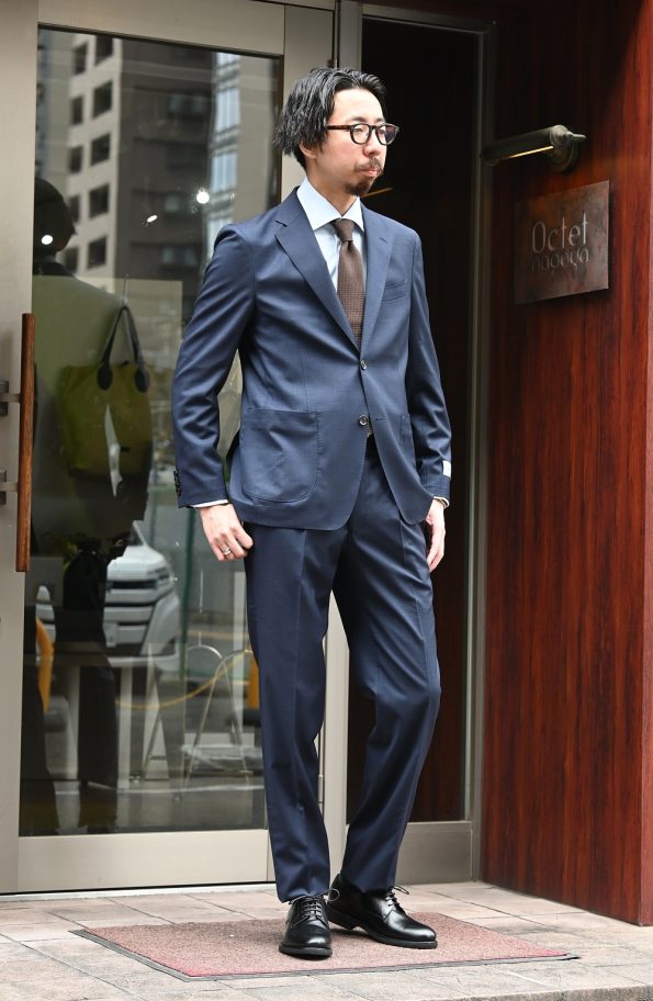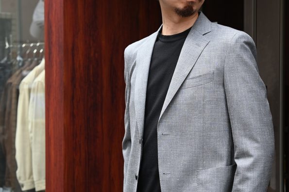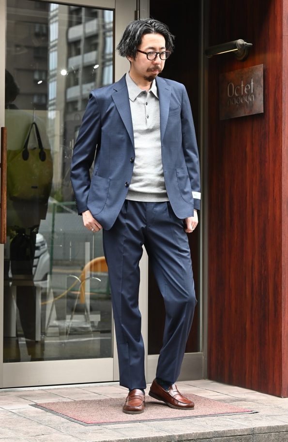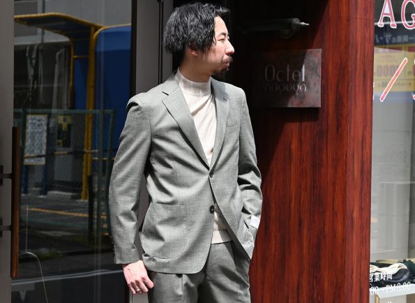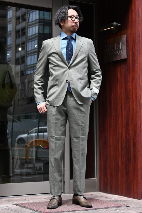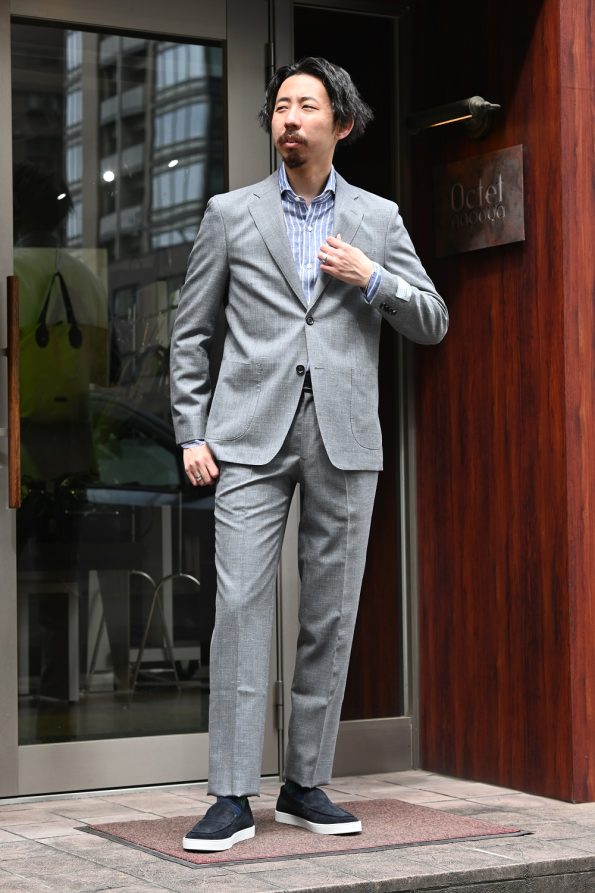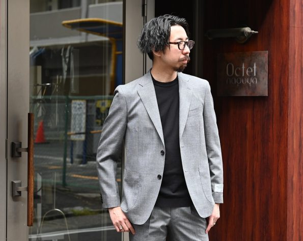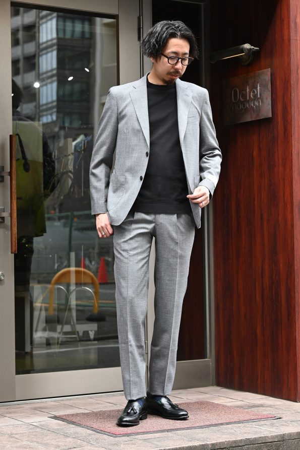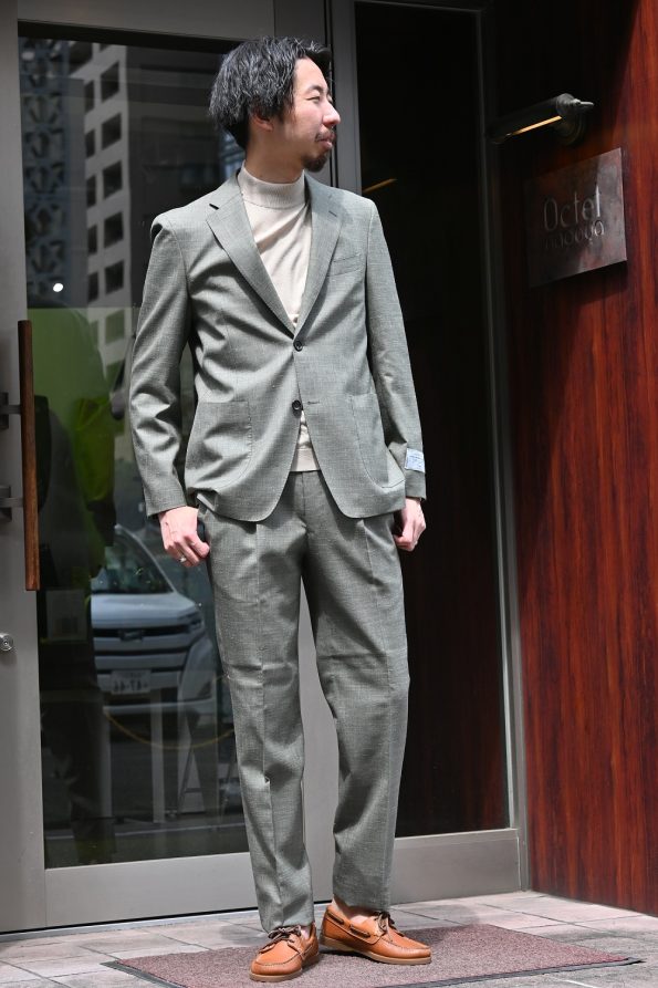 厳選した最高級のインポートを生地を使用し、型紙(シルエット)も試行錯誤を重ねた拘りのアイテムが完成。イタリア素材、日本メイドのスーツでいながらハイパフォーマンスで皆様に自身を持ってご提案出来る一着です。