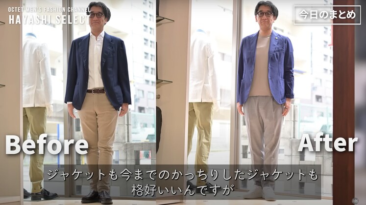 ということで、今日のまとめなんですが、普段ありがちな、いつも着てるようなコーディネートから、ちょっとだけイメージやコンセプトを変えて、同じスタイリングでも少し今っぽく、スタイリッシュな雰囲気を意識してみましょうっていうことで、ビフォーアフター形式でコーディネートをご紹介してみました。