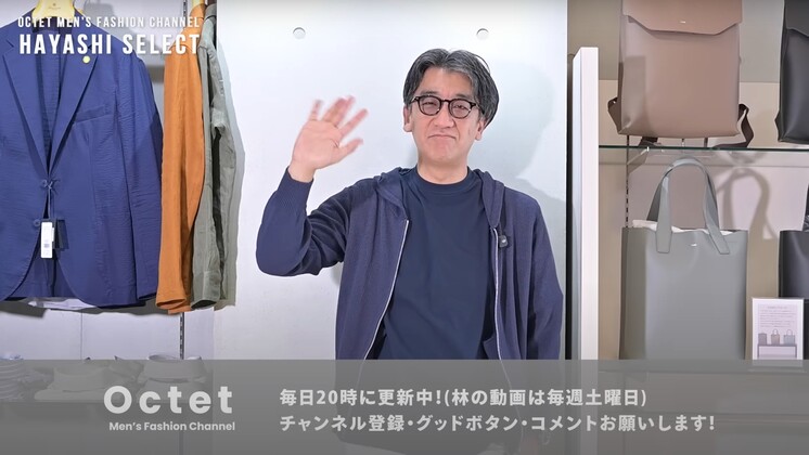こんにちは。オクテットメンズファッションチャンネルの林です。僕のチャンネルは、自分の気に入ったアイテムやブランド、コーディネートのアドバイスをするチャンネルとなっております。今日もよろしくお願いいたします!