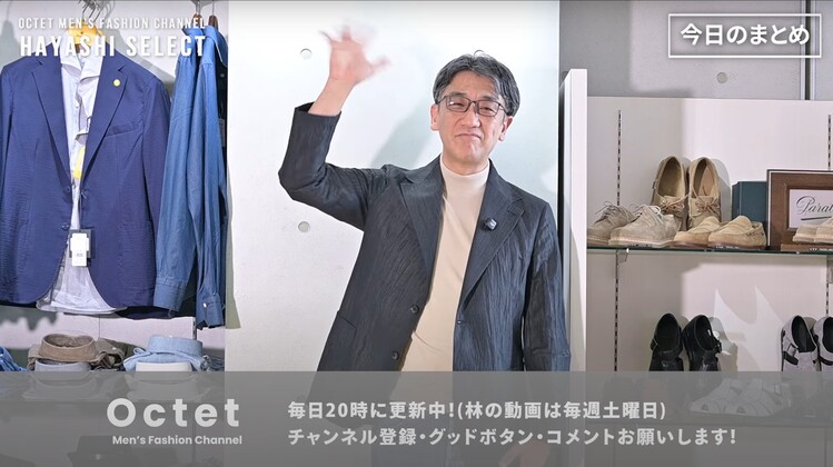 こんにちは。オクテットメンズファッションチャンネルの林です。僕のチャンネルは、自分の気に入ったアイテムやブランド、コーディネートのアドバイスをするチャンネルとなっております。今日もよろしくお願いいたします!