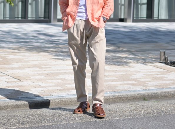 快適なスリムスラックス”BERTO(ベルト)”のショート丈モデル。ストレッチ素材且つバックはシャーリング仕様の履き心地抜群の一本。