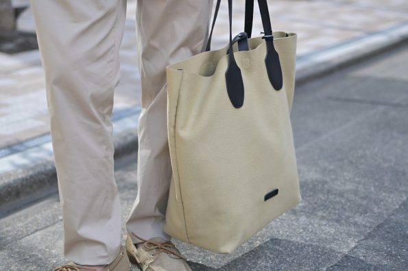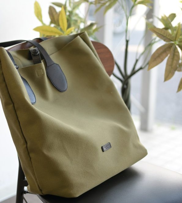 メインに季節感溢れるキャンバス素材と、持ち手に上質なレザーをあしらったバッグ。縦型スクエアフォルムで収納力も優れております。