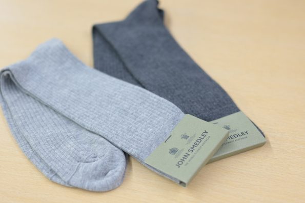 英国王室御用達の230年以上の歴史を誇るJOHN SMEDLEYの柔らかい肌触りと、快適さを兼ね備えた上質なコットンナイロンを使用したリブ編みソックスになります。程よく薄手の生地になりますが通気性も良く、厚みも薄すぎず、厚すぎない為、通年愛用出来るアイテムです。