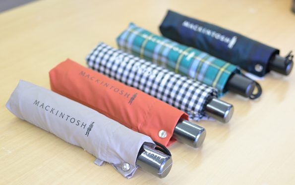 普段はなかなか自分では選ばないけれど、『もらうと嬉しい』そんなアイテムのひとつが、上質な傘になります。オススメのアイテムはマッキントッシュの折り畳み傘。持ち運びもしやすくデイリーユースに活躍するワンプッシュ式で機能面も抜群。