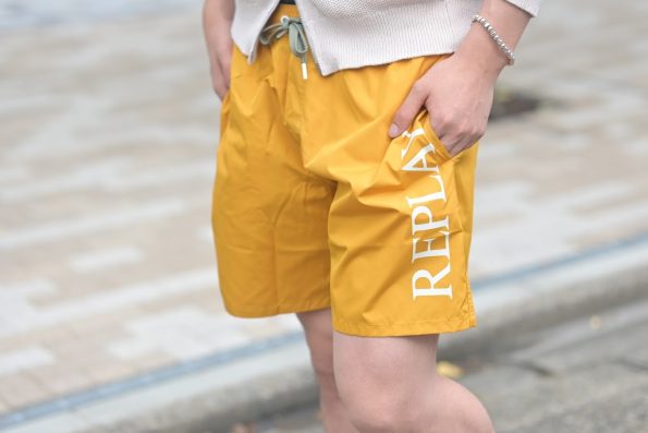 せっかくのお盆休みお出掛けも増えるシーズンなので、スイムショーツを使ったスタイル。リプレイのショーツはやや派手に映るかもしれないが、意外と海やプールなど開放的なロケーションでは、このくらいでちょうどいいのでは。