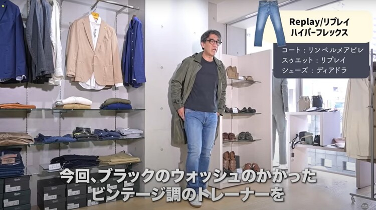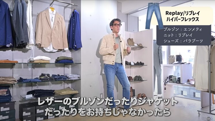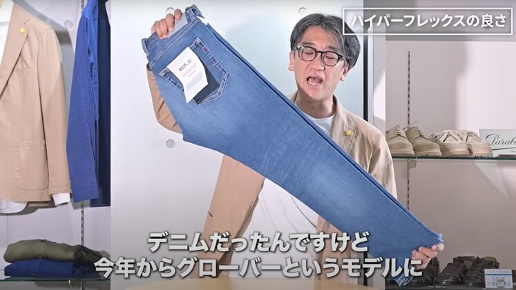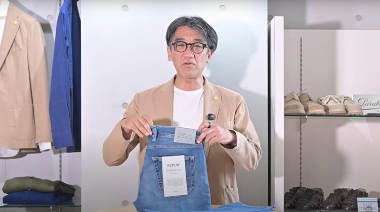 2025-26年秋冬シーズンの最初に、林がご紹介するアイテムは、リプレイ(REPLAY)のハイパーフレックス(HYPER FLEX)素材を使ったデニムです。