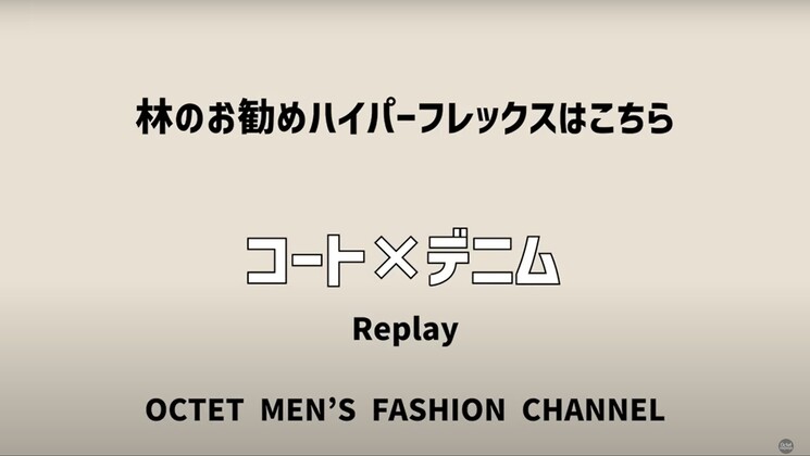 こんにちは。オクテットメンズファッションチャンネルの林です。僕のチャンネルは、自分の気に入ったアイテムやブランド、コーディネートのアドバイスをするチャンネルとなっております。今日もよろしくお願いいたします!