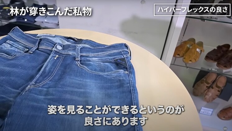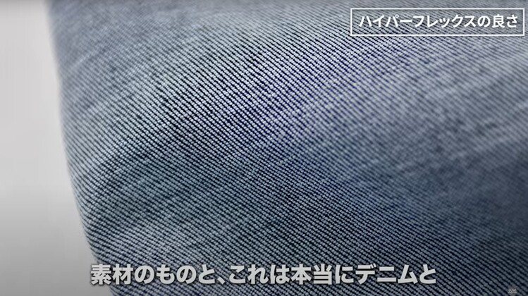 このハイパーフレックスというのは、糸がすごくよく伸びる素材で作られたデニムなんです。糸自体が伸びるように加工されているんですよ。