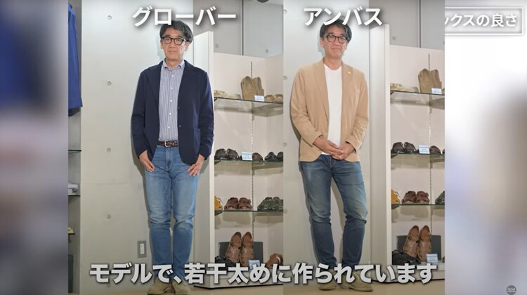 もちろん、今も”アンバス”というモデルはありまして、ただ、こちらは新しいモデルで、若干太めに作られています。大人の男性が穿くには少し太すぎて、だらしなく見えたり、逆に若く見えすぎてしまうこともありますしね…